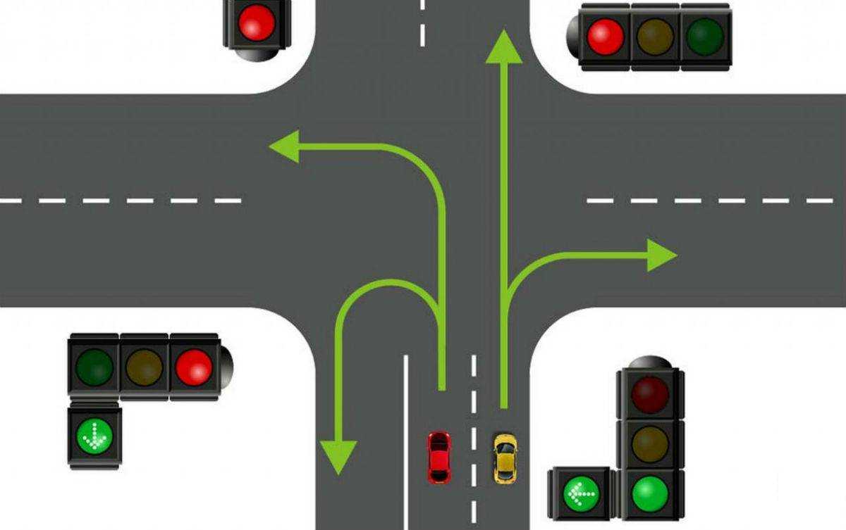 Если на светофоре есть дополнительные зеленые участки, ситуация немного усложняется. Водитель должен определить участок, который простирается в желаемом направлении.
