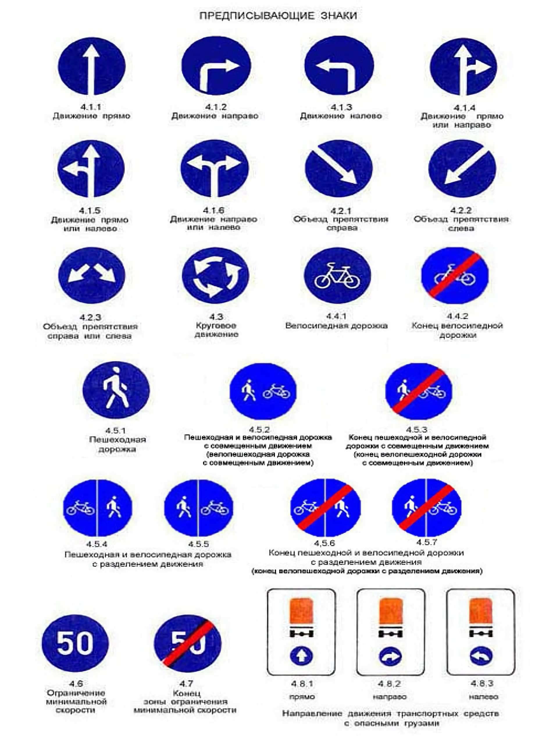 Предписывающие указывают на обязательность выполнения какого-либо маневра – поворота или движения прямо. Невыполнение предписания считается нарушением ПДД и наказывается штрафом.