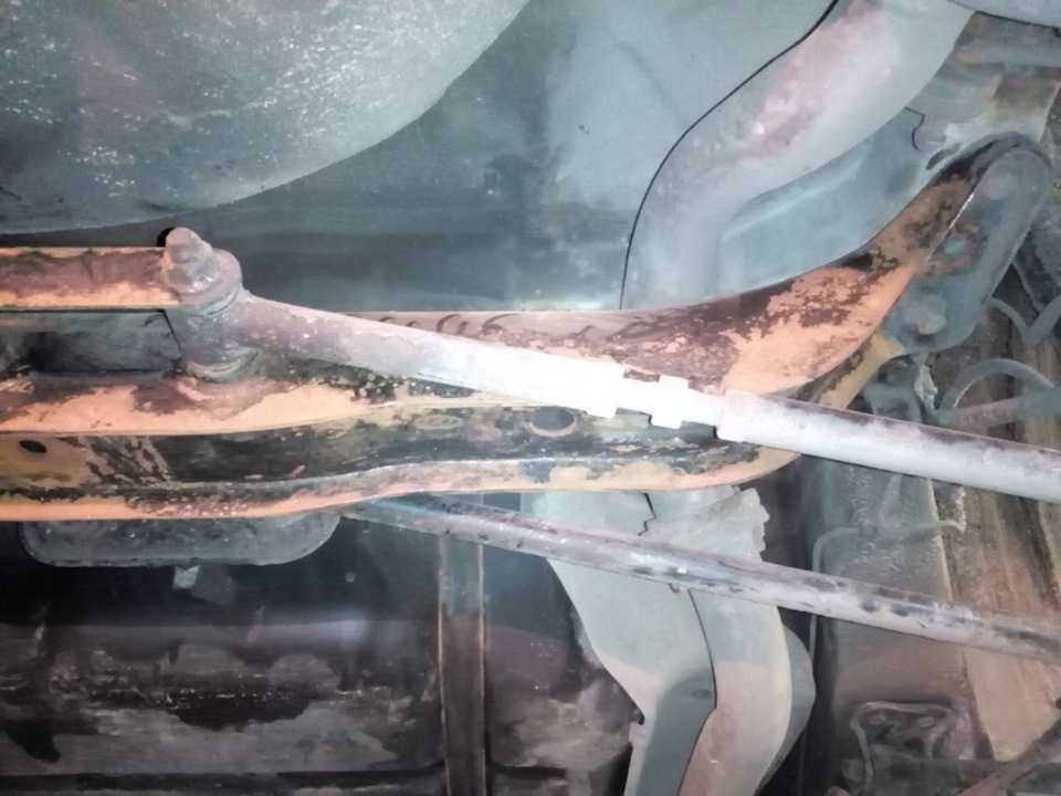 Раз уж такое дело, то решил и обновить покрытие задней балки — она тоже была жестоко отчищена щеткой, обработана преобразователем ржавчины и покрыта этой же мастикой в несколько слоёв. Вот что скрывалось под покрытием: