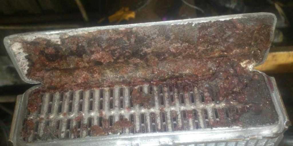 Образовавшаяся коррозия на внутренних деталях радиатора способствует появлению неисправности. Причиной может стать неправильный выбор охлаждающей жидкости, влекущей за собой образование агрессивных веществ или электролиз. В таких ситуациях нет смысла ремонтировать радиатор, так как возникший процесс нельзя остановить.