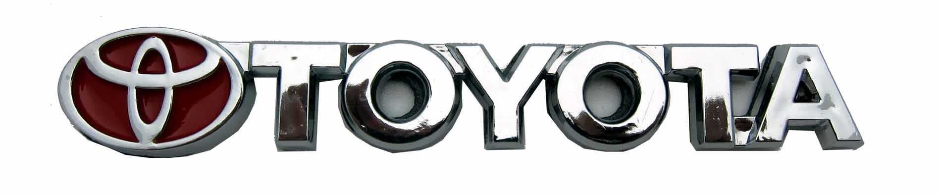 - красный прямоугольник с белыми буквами «TOYODA» на фоне синего кристалла;