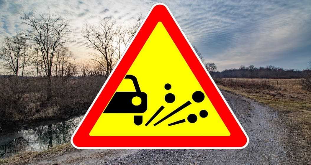 Наличие такого знака предупреждает водителей о том, что впереди находится участок дороги, на котором возможен выброс гравия, щебня и других камней из-под колёс машин (см. Приложение 1 к ПДД). В данном случае водители осведомлены об опасности и состоянии дорожного полотна в зоне действия знака 1.18 «Выброс гравия». Обычно тут же ставят знаки ограничения скорости до 40 км/ч.