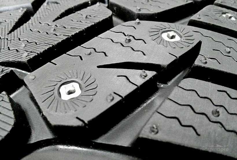 Шипы буквально “вгрызаются” в лед, цепляются за укатанный снег, что обеспечивает точность управления и хорошую проходимость в самых сложных ситуациях. К сожалению, при движении по чистому асфальту шипы подвергаются повышенным механическим нагрузкам, а потому часть из них может попросту “вылететь”.