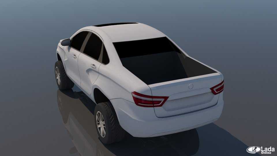 Данную ситуацию решили в очередной раз исправить уже профессиональные дизайнеры. Для воссоздания внешности пикапа, за основу была взята версия Vesta Cross, поскольку именно эта псевдо-внедорожная версия идеально бы в теории подошла на роль базы для внедорожного пикапа-грузовичка. За счет огромного дорожного просвета (целых 203мм.), черной пластиковой защите нижней части машины, пикап даже в компьютерной 3D модели выглядит органично, целостно и приятно.