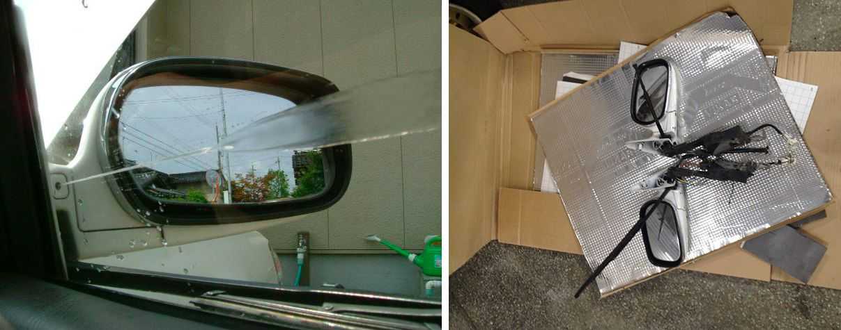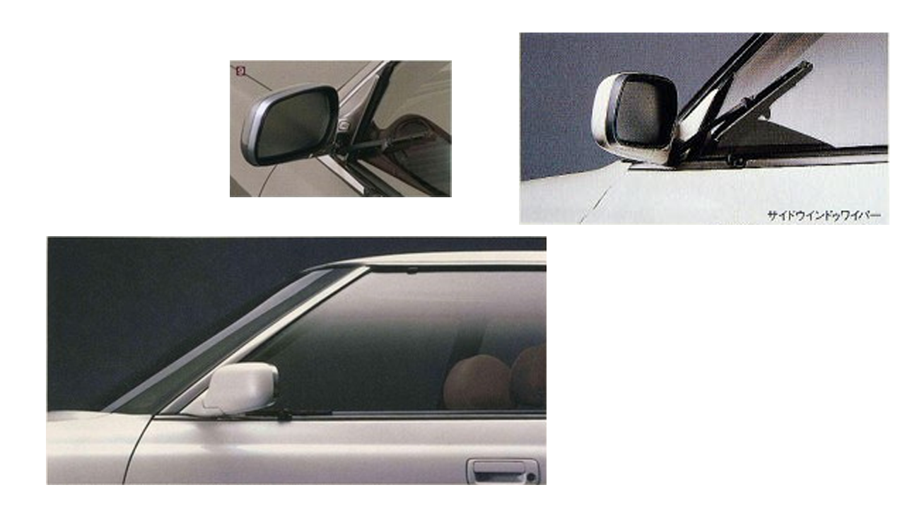 Вот, к примеру, странные щетки стеклоочистителей для боковых окон. Из бокового зеркала выходил привод щетки, форсунки для омывания боковых стекол были расположены в том же месте. Что это, хитрая задумка расчетливых японских инженеров или бред безумца?