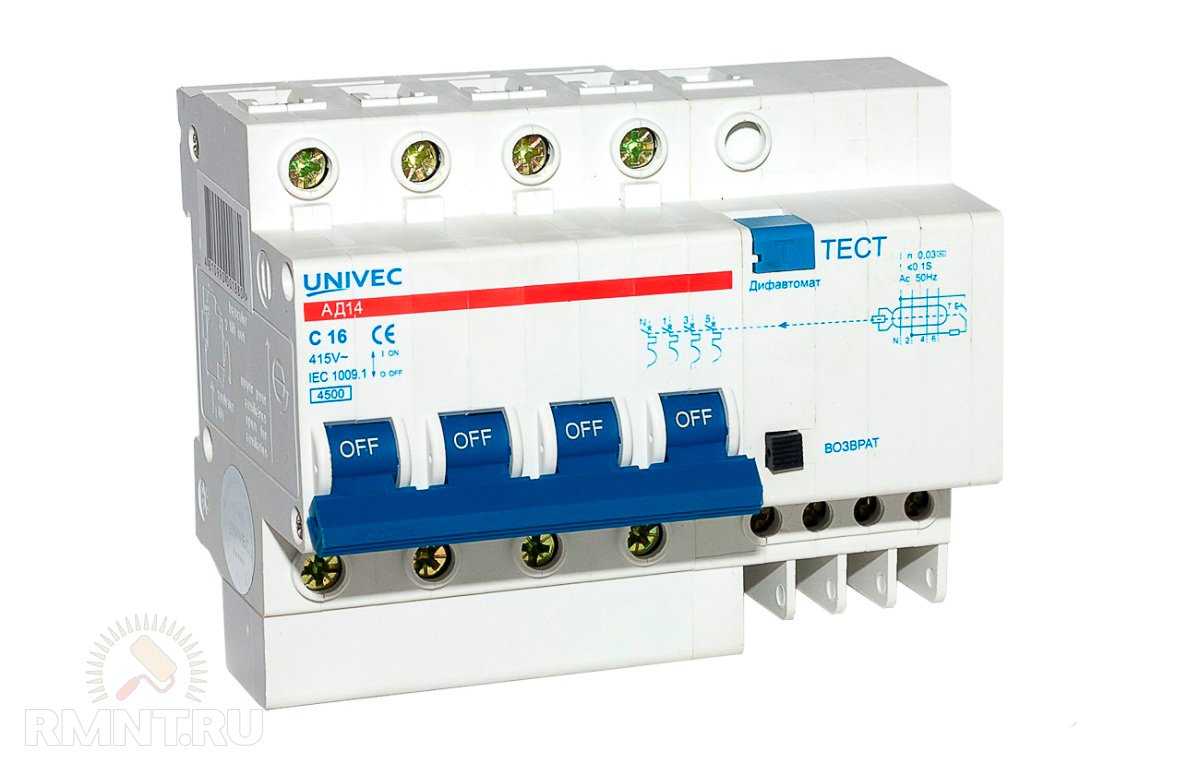 Именно с ним последовательно соединяется описанное нами выше УЗО. Это коммутационный контактный аппарат, который способен проводить токи, включать их и отключать в случае короткого замыкания и появления других ненормальных условий в сети. Удобен тем, что может использоваться многократно, защищая квартиру от коротких замыканий.