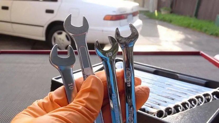 - Накидной ключ также может оказаться необходимым приспособлением. Головки для откручивания болтов с сорванными гранями довольно часто справляются с самыми сложными случаями. Профиль ключа должен состоять из 12 граней, а внутри – гнездо звездочка. Головка должна быть на один размер меньше болта. Деталь аккуратно надевают на крепеж при помощи молотка и начинают выкручивание метиза.