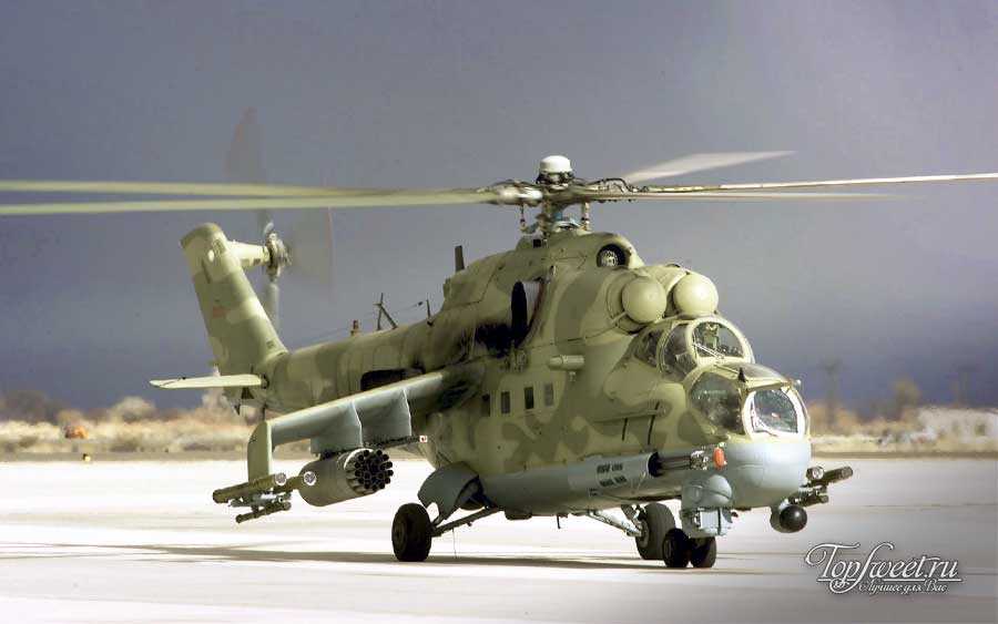Один из лучших боевых вертолетов всех времен и народов – Ми-24. Он встал на вооружение советской армии в 71-м году и по сей день используется во множестве стран (особенно в России). Его вооружение и оснащение зависит от модификации, каждая из которых разработана для определенных условий. Во времена появления Ми-24 у США был сконструирован аналогичный вертолет AH-24 «Апачи», но у советского было преимущество – он мог перевозить на борту еще и 8 пассажиров. Ми-24 может вести огонь по наземным и воздушным целям в любое время суток и даже при тяжелых метеоусловиях, а также обладает рекордной скоростью среди боевых вертолетов – 335 км/ч.