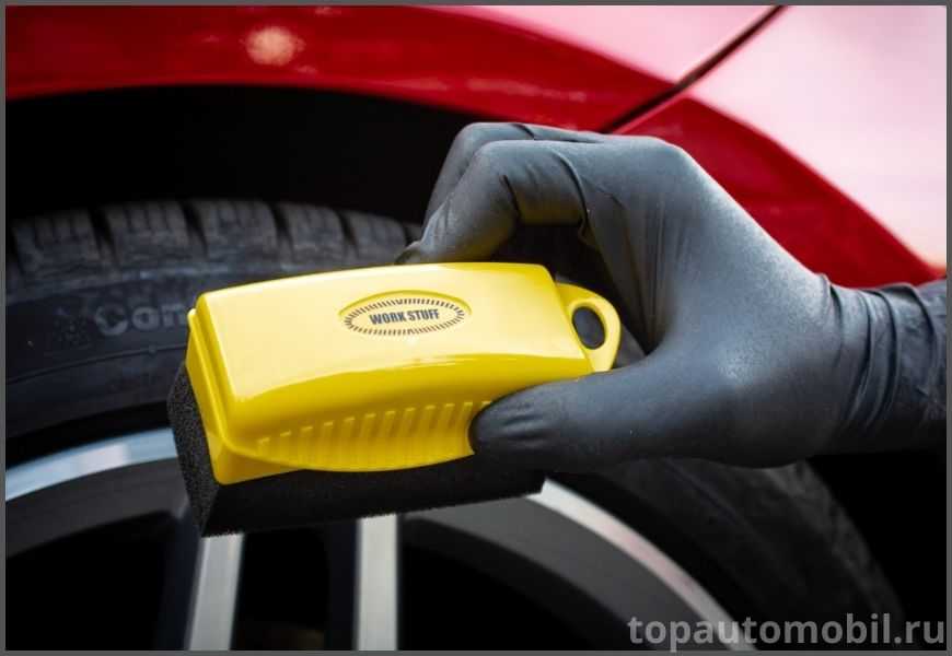 Наносить состав на шины можно двумя способами. Если состав жирный, то сначала его прыскают на губку, а потом последней растирают покрышку.
