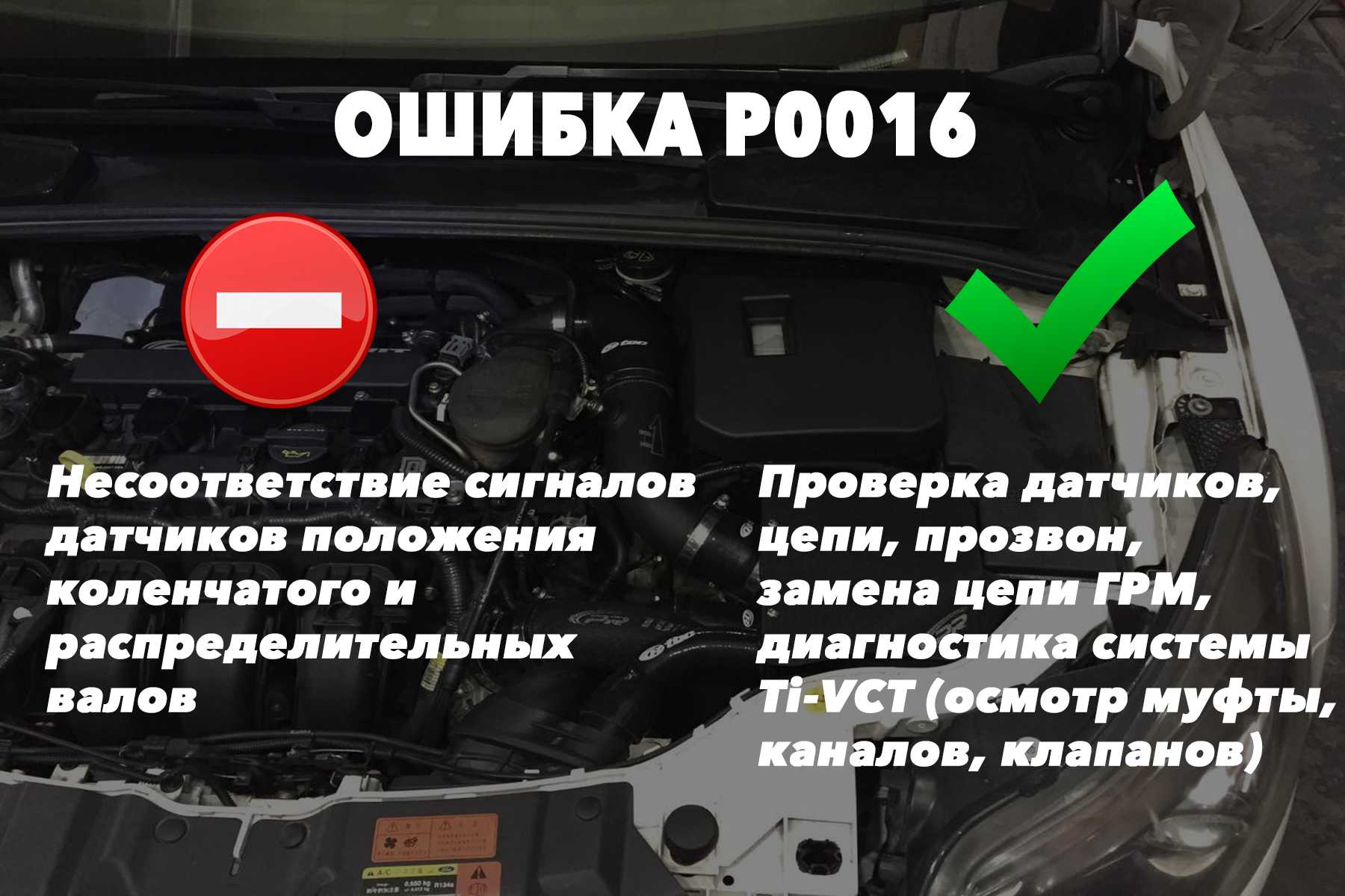 Специалисты отмечают пять основных причин: нарушение контакта между датчиками и блоком управления, загрязнение масляных каналов, выход из строя одного или сразу двух датчиков, поломка муфты CVVT. На практике в 90% случаев виновником головной боли автовладельца Форд Фокус 3 выступает система Ti-VCT. В задачи водителя входит проверка клапанов, муфты, масляных каналов на предмет закоксовывания, фильтры и прочие элементы. На модификациях седана с цепным приводом ГРМ (моторы Duratec на 1.6, 2.0 литра) часто ошибка исчезает после смены цепи новым оригинальным экземпляром. Важна проверка ДПКВ и ДПРВ на исправность, прозвон проводки и электрической цепи, поиск КЗ.