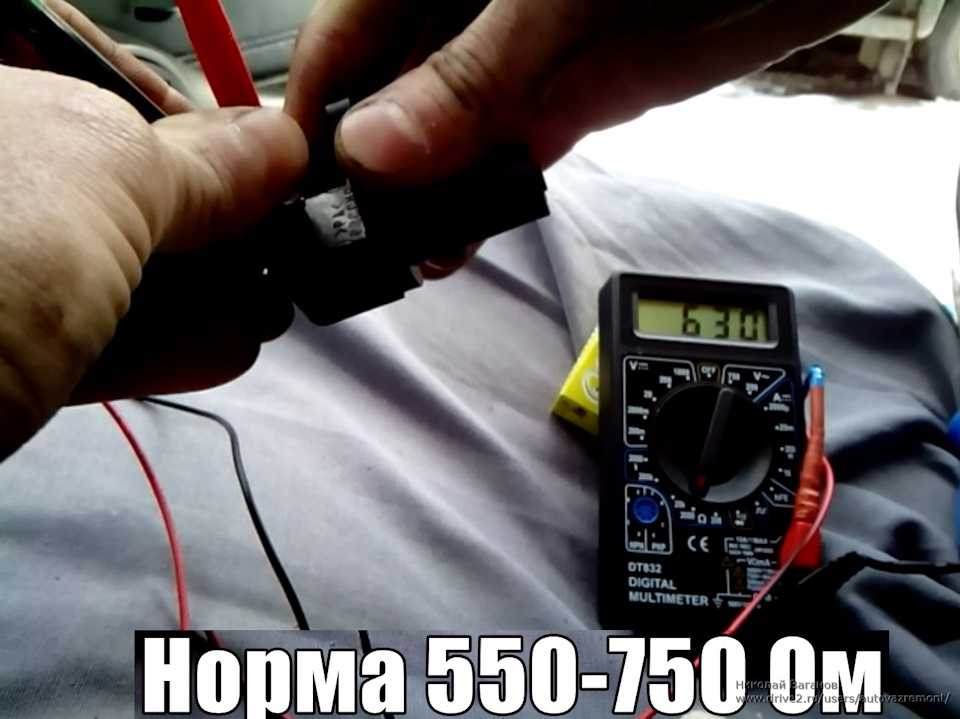 - Подключаем клеммы от мультиметра к ДПКВ. Замеряем сопротивление. Допустимый диапазон 750 – 800 Ом. Превышение или занижение – признак неисправности.