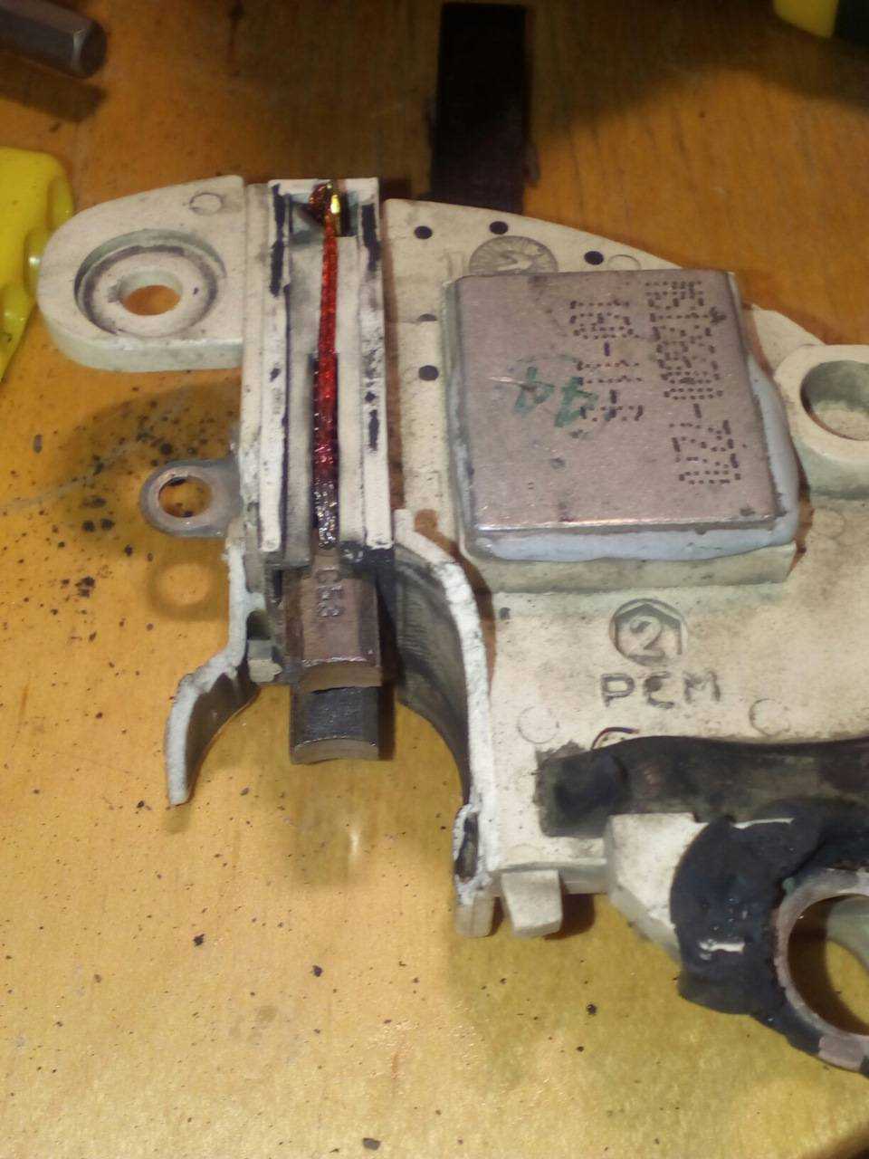 В моем случае все завершилось заменой щеток.В случае если генератор исправен на 100% имеет смысл залезть в блок предохранителей и посмотреть контакты там. Обычно коррозия делает свое дело. Т.е. блок PCM получает данные о напряжении от генератора, но плохой контакт работает как сопротивление и комп думает что есть проблемы с зарядкой. Для проверки работоспособности генератора берем тестер и смотрим какое напряжение дает генератор. Норма 13.2-14.2 Вольт под нагрузкой ламп ближнего света и печкой или подогревом.Стертые щетки и/или кольца будут проявляться мерцанием подсветки приборов, ближнего света, и изредка будет выстреливать значок АКБ.Вся операция заняла порядка 15 минут снять генератор, 30 минут замена щеток и установка около 20 минут
