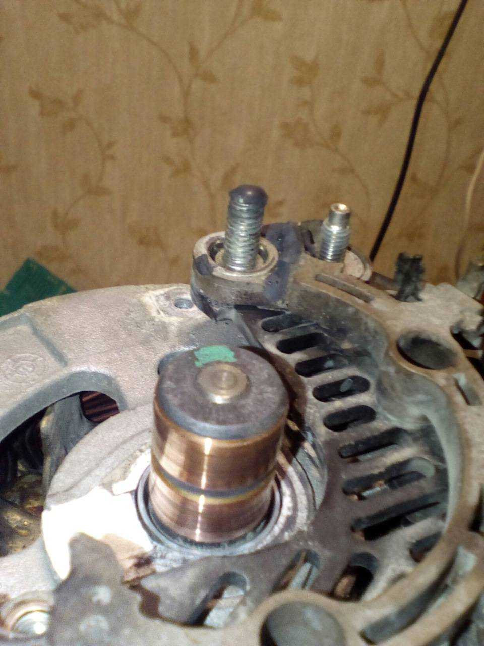 Токовые кольца имели небольшой износ который я убрал нулевкой.Провод с новых щеток не доставал до контактов, вопрос решился пайкой.Далее приклеиваем обратно пыльники щеток ( клеил моментом универсал). Гайку покрытую черным герметиком затягиваем и герметизируем. Можно красным абро