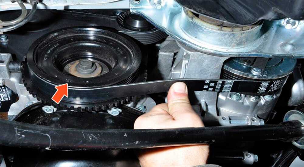 Для комплектаций без кондиционера нужно снять демпфер коленчатого вала, вывернув болт и сняв шайбу.