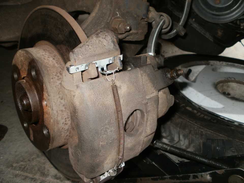 Также имеется «колхозный» вариант решения проблемы со стуков суппорта из-за направляющих. В суппорте и блоке тормозных цилиндров просверливаются дополнительные дырки, и детали стягиваются при помощи распорной пружины.