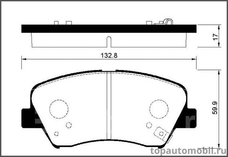 - Передних дисков (мм) — 132,8 x 58,2 x 17, оригинальный номер Hyundai Mobis: 58101-1RA05;