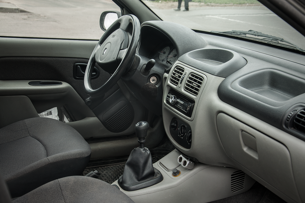 Возможно, в более богатой комплектации не будет возникать ощущения ущербности от, например, отсутствия подсветки «бардачка», тахометра, задних брызговиков, регулировки паузы стеклоочистителей и ещё двух мелочей, о которых владелец просил не говорить. Тактично промолчим о кондиционере, ABS, ЭСП и других опциях, которые для многих стали уже нормой. Конечно, ничего этого нет. Зато есть подушка безопасности водителя в самой «овощной» комплектации, защита двигателя, есть устойчивый к коррозии кузов, есть надёжные мотор и коробка. То есть, всё необходимое для успешной и – что очень хорошо для «бюджетника» – сравнительно безопасной эксплуатации автомобиля. Достаточно спорная внешность (сегодня я деликатен, как никогда) уходит на второй план по сравнению с оформлением интерьера, так непохожего на интерьер ближайшего конкурента – Логана. Да и ехать, не буду лукавить, достаточно приятно: подвеска не «ругается» даже на существенных неровностях и трамвайных путях, мотора почти не слышно (если не слишком его крутить).