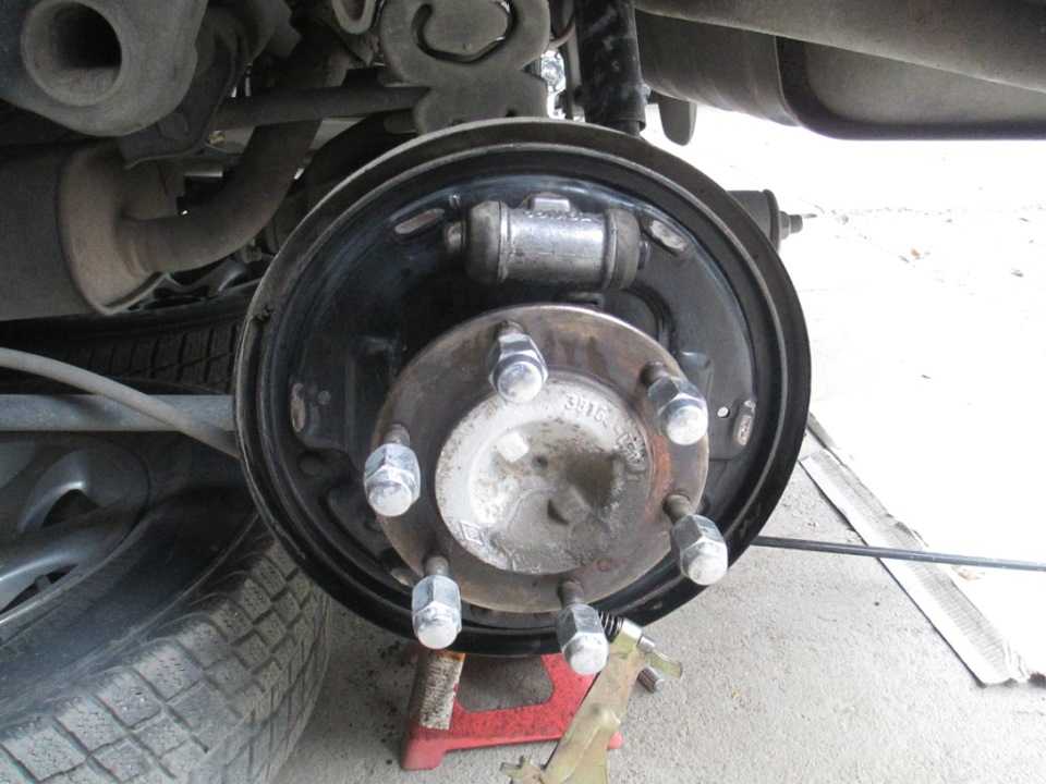 Для демонтажа отработанного фрикционного материала требуется поставить автомобиль на домкрат или подъемник и снять колесо, после чего демонтировать тормозной барабан