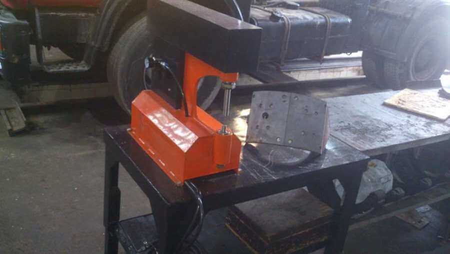 После этого можно разместить заклепки в отверстия и развальцевать их, зафиксировать накладку попрочнее на тормозной колодке. Далее с помощью пневмопресса выполняется развальцевание