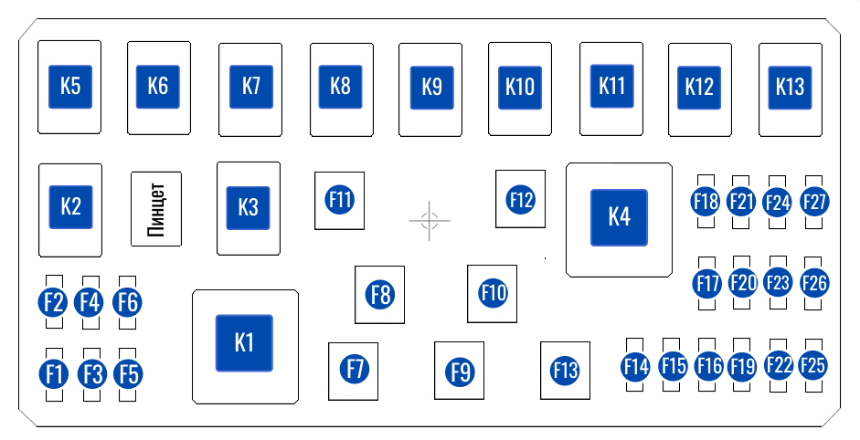 | К1 | Реле 4-й скорости вентилятора системы кондиционирования/охлаждения |
