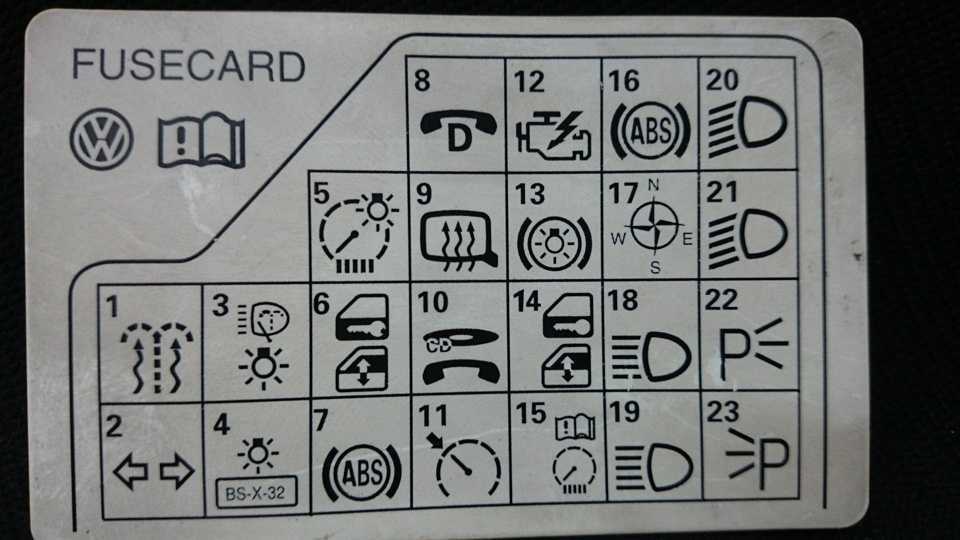 Схема предохранителей VW B5. Источник фото: https://www.drive2.com/l/5460161/