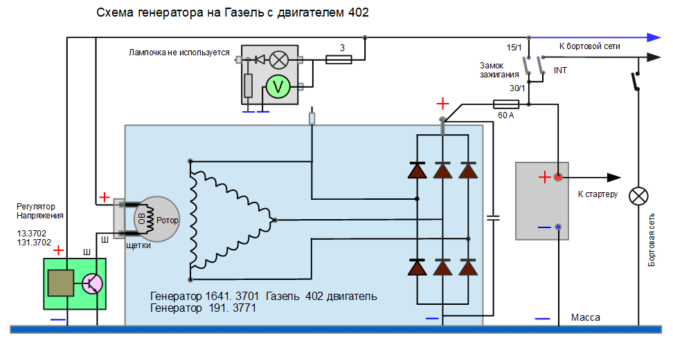 Схема генератора на «Газель» с двигателем ЗМЗ 402