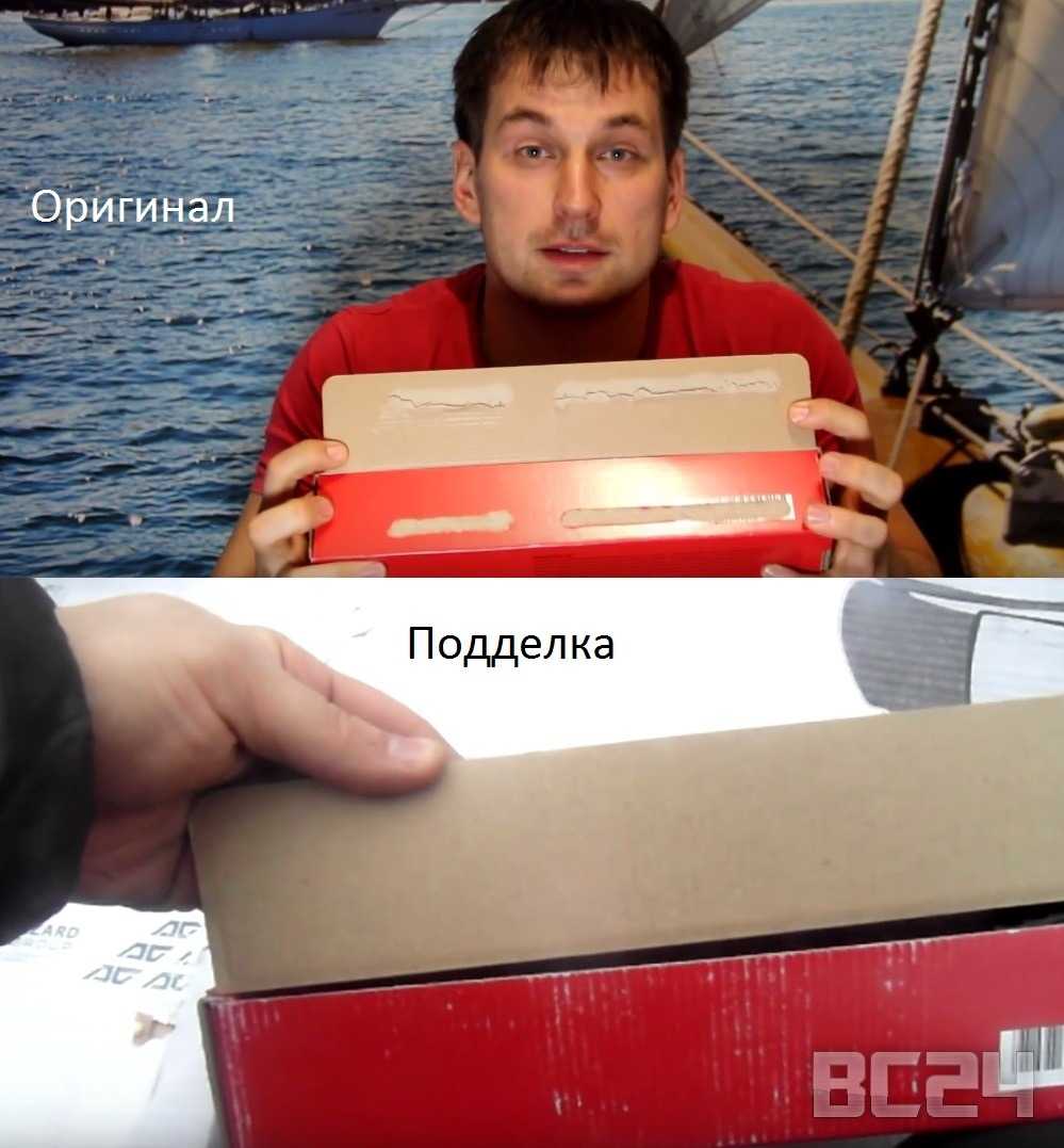 - Подлинные коробки аккуратно, а также тщательно проклеивают. Подделки склеены криво и косо;