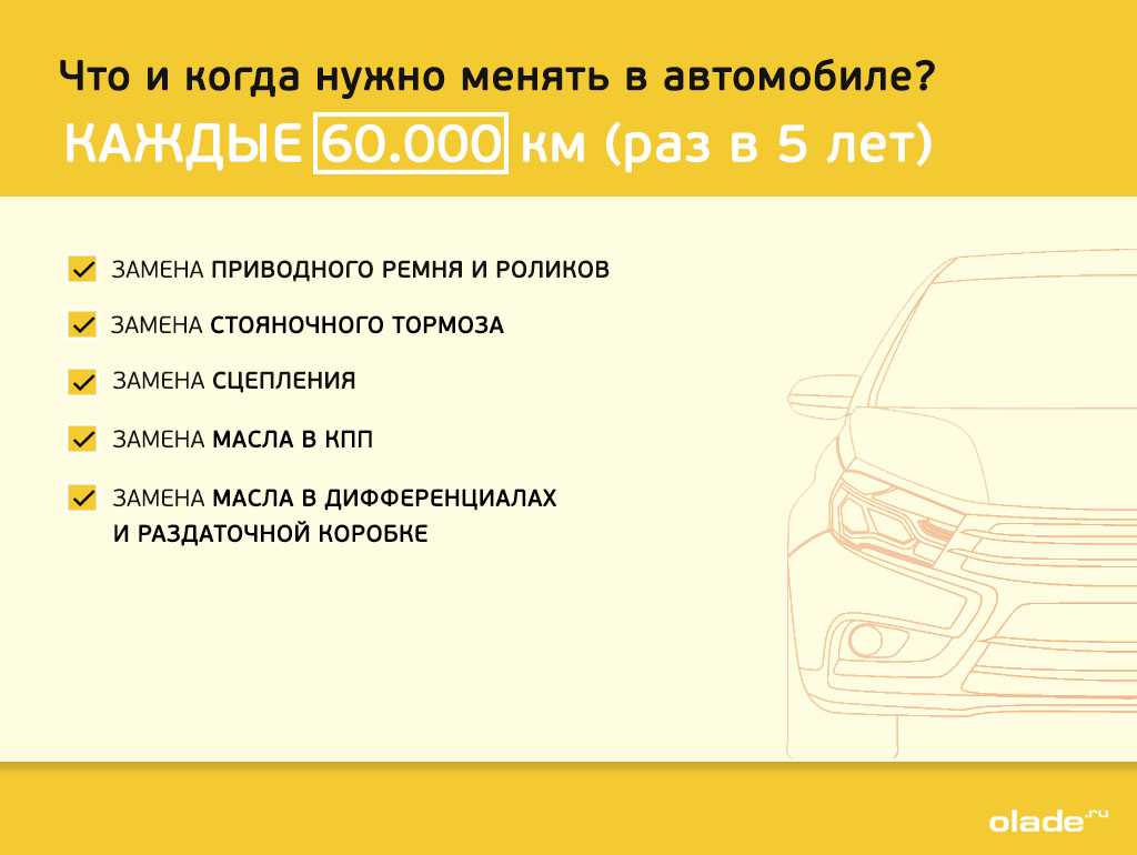 Каждые 60 000 км (или раз в 5 лет)