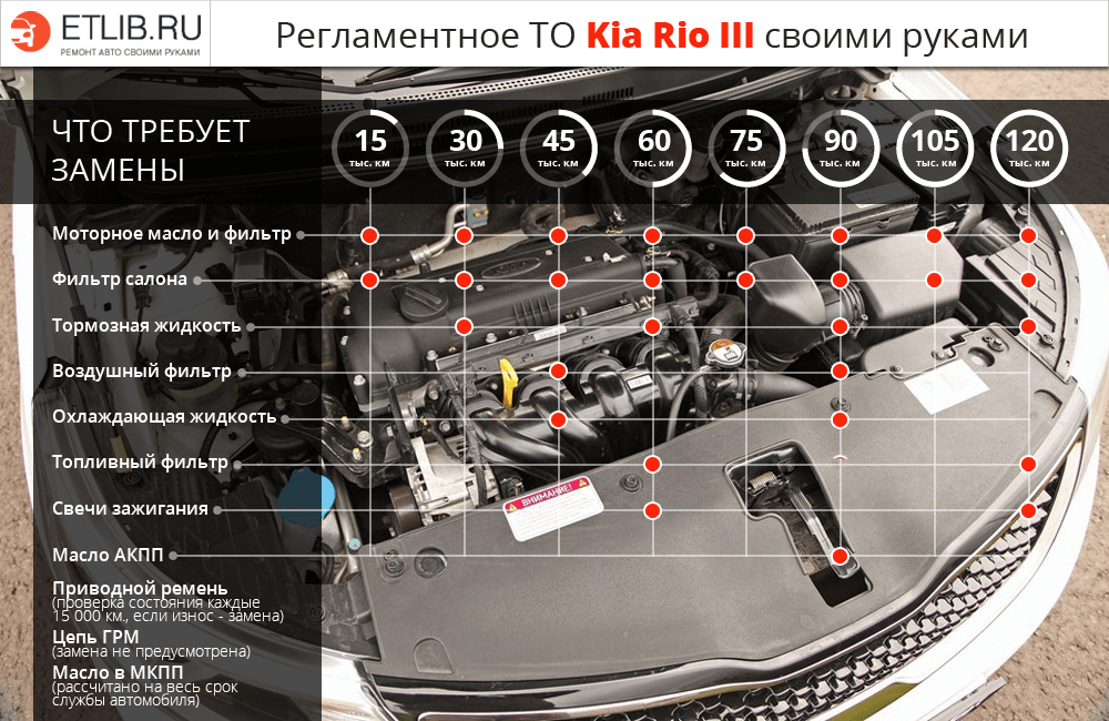 Таблица ТО Киа Рио 3 выглядит следующим образом: