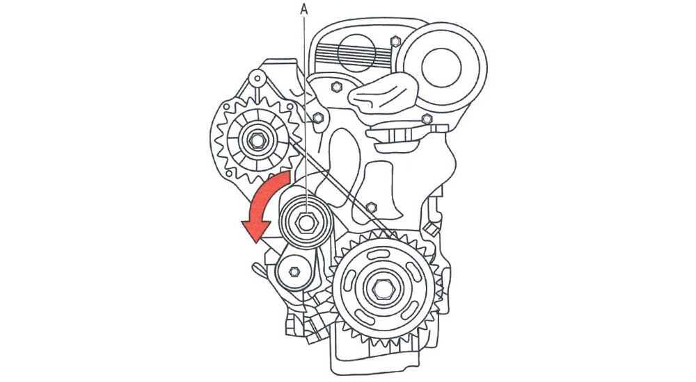 - проворачиваем центральный болт натяжителя по часовой стрелке, добиваясь ослабления натяжения ремня;