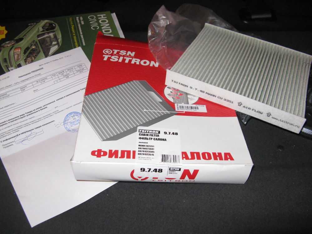 Можно выбрать для автомобиля и качественные аналоги. Например, для Honda Civic 4D подойдут модели TSN 9.7.134 и Sinolar SCC2358, которые можно купить самому за 500-700 рублей. Аналогичные фильтрующие элементы подойдут и на версию 5D, где они расположены в том же месте – за бардачком.