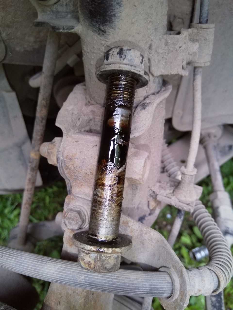 14. Поднимите крышку и проверьте шток амортизатора. Протечки жидкости по стволу не допускаются.