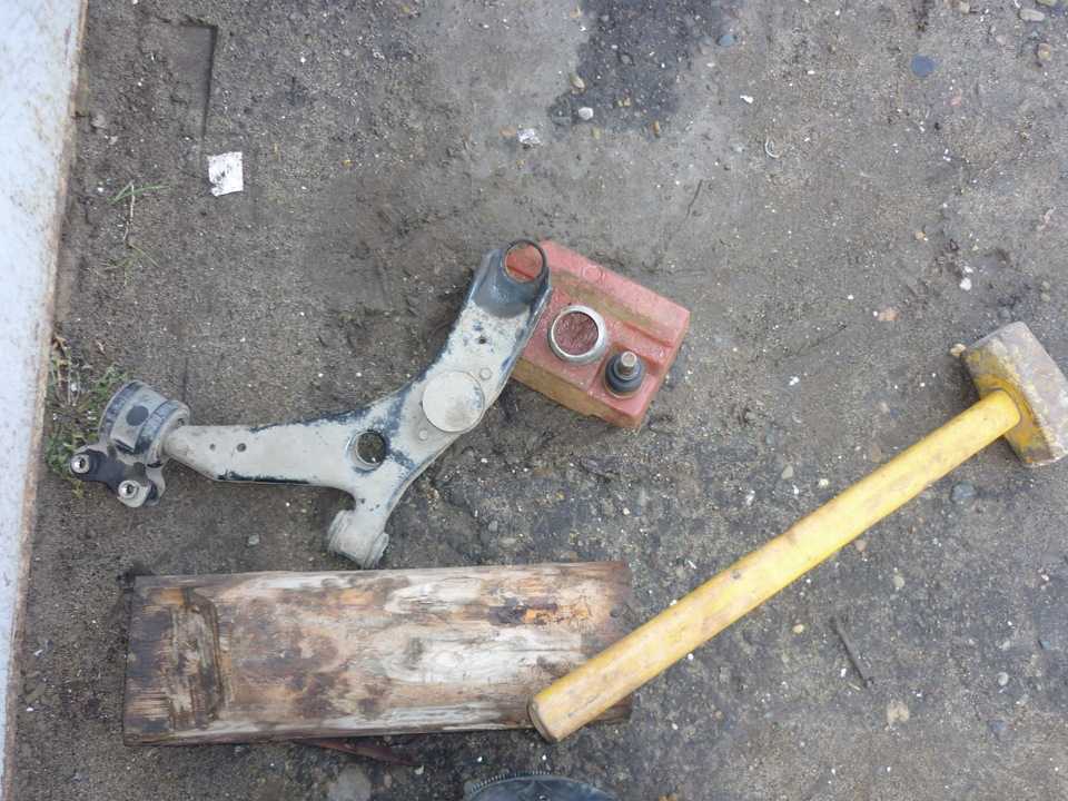 Как и в моих предыдущих записях про смену сайлентблоков, принцип выбивания шаровой такой же. Ставим рычаг ровно на трубку, стучим сверху по шаровой и она медленно но верно выходит.