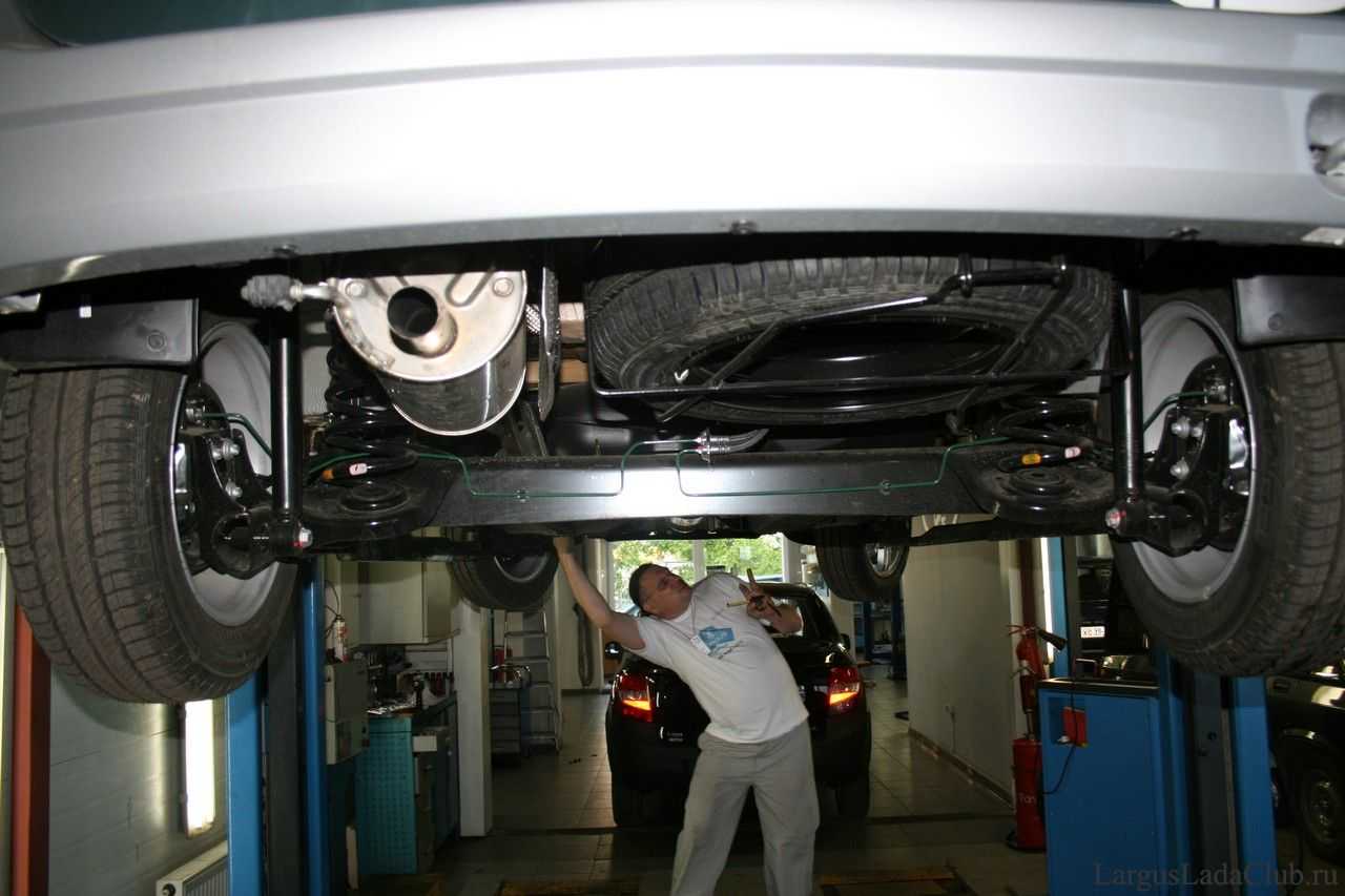 1. Установите автомобиль на двухстоечный подъемник и затормозите его стояночным тормозом.