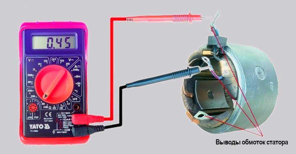 Значение на дисплее не должно превышать 10 кОм. Там, где сопротивление стремится к бесконечности, нарушена целостность проводов. Поможет только полная замена статора.