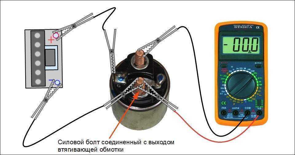 Неисправность реле можно выявить без демонтажа стартера. Для этого на управляющую клемму следует подать напряжение. Если характерного щелчка не слышно, то реле подлежит замене.