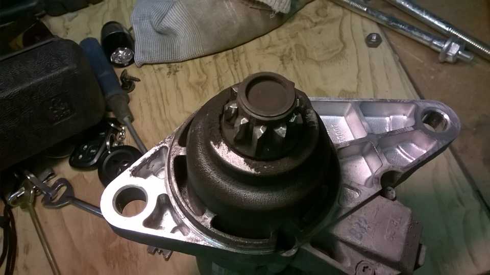 Для интереса сравним состояние ведущей шестерни, вращающей маховик нового стартера, с шестерней старого. Ощутимой разницы не было, кроме того, что был достигнут предел внутреннего утомления, после чего хозяин ушел, как Ельцин.