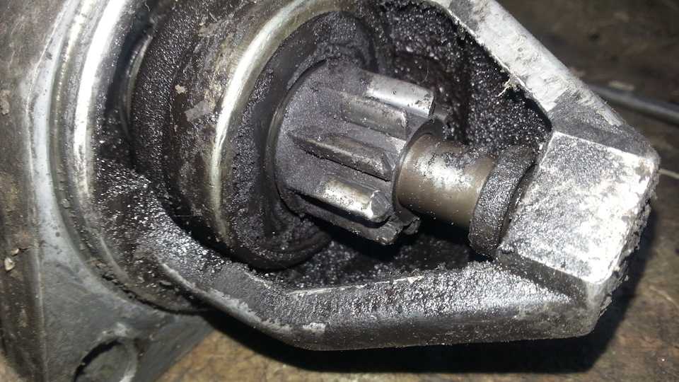 Легко исправить ситуацию, когда привод стартера тяжело идет по винтовой нарезке – вам достаточно сначала промыть нарезку вала, а затем смазать ее маслом.