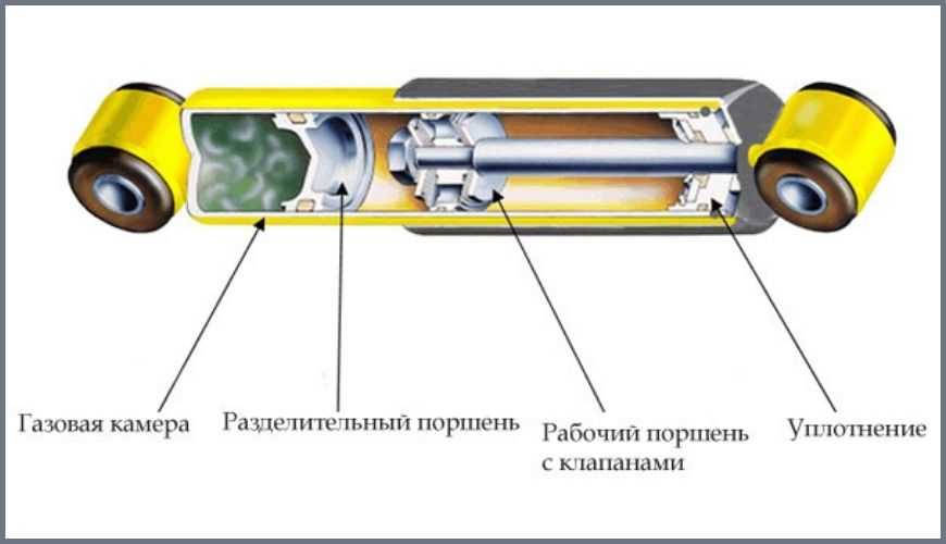 Классический автомобильный амортизатор состоит из внешнего корпуса с внутренним стаканом, заполненным рабочей жидкостью (минеральным маслом). Лучшие модели имеют газовую подушку, для компенсации изменения объема масла при изменении температуры. Со штоком амортизатора связан поршень, который вытесняет жидкость через систему клапанов в пространство между внутренним стаканом и корпусом. При высоких нагрузках эффективность работы падает (из-за вспенивания жидкости либо кавитации), поэтому были разработаны амортизаторы с единой трубой.