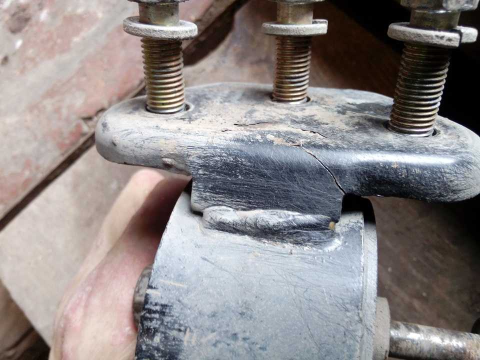 - Поддеваем монтировкой сначала правую переднюю стойку и дергаем ее то в одну, то в другую сторону. Если при этом появляется стук и звон, то деталь скоро придется заменить.