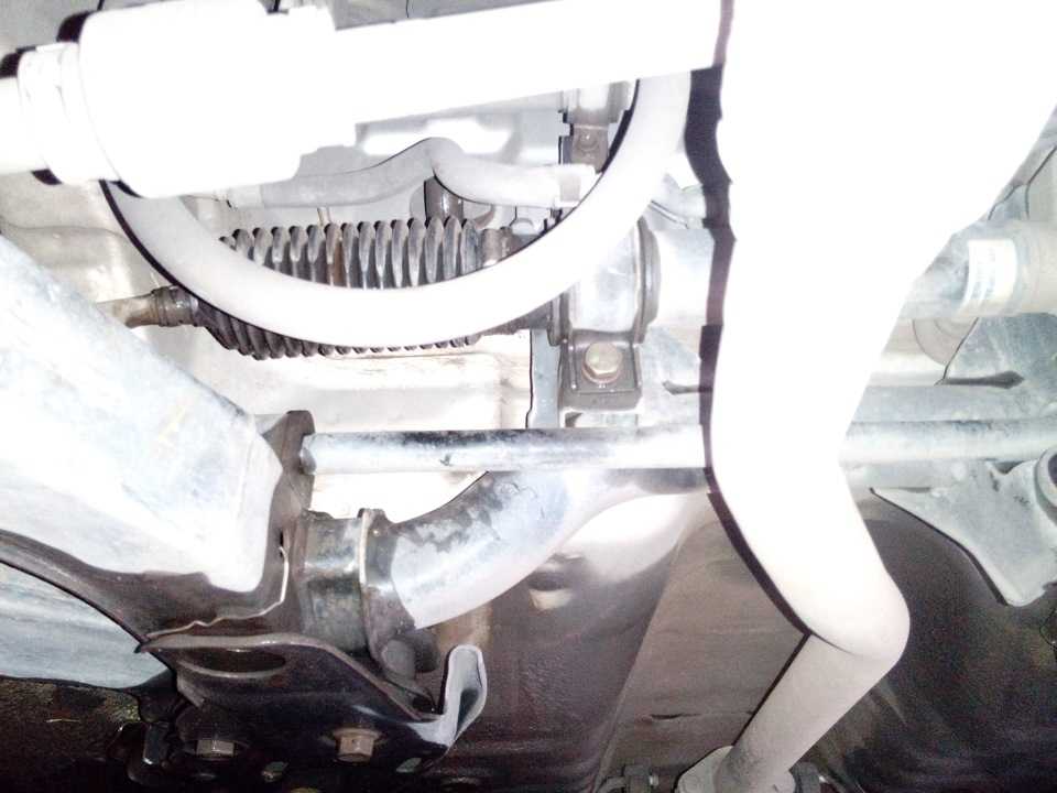 и после этого начинаем снимать рейку, для этого1) фиксируем руль и в ногах водителя откручиваем ключом на 12 карданчик от рейки2) откручиваем и снимаем стабилизатор, для этого откручиваем стойки стабилизатора, и втулки, втулки прикручены болтом на 12 и со второй стороны их держатель вставлен в прорезь в подрамнике