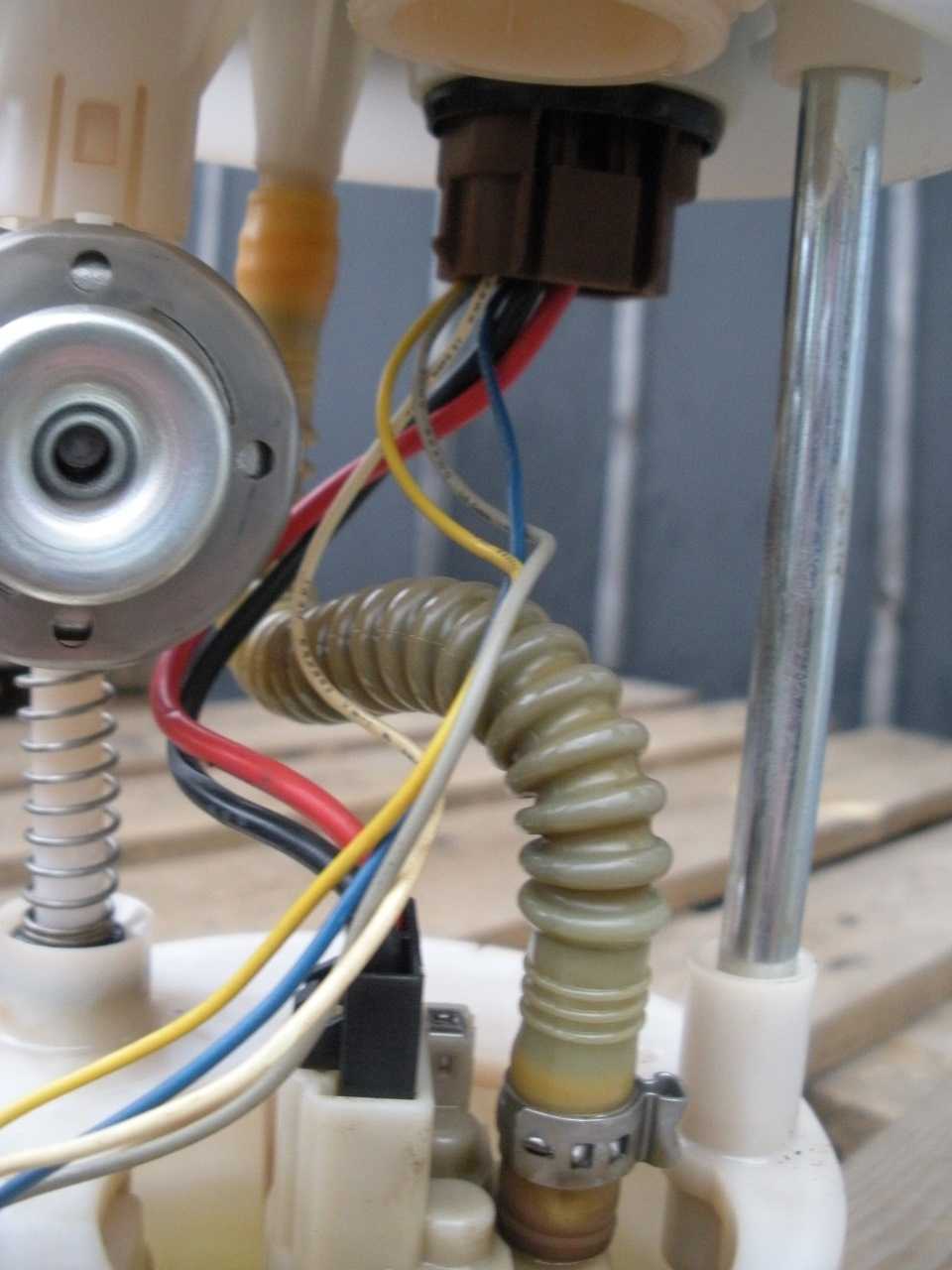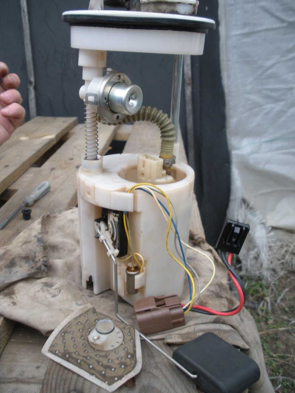 Теперь, когда ваш агрегат демонтирован, пришло время приступить к его разбору. Для этого демонтируйте хомуты крепления патрубка, чтобы шланг был более эластичным. Также не забудьте отключить штекер питания компонента топливной системы.