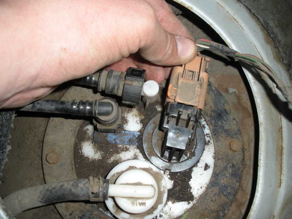 Теперь осторожно, не прикладывая дополнительных усилий, при помощи пассатижей отключите патрубок от бензонасоса. В этот момент устройство можно немного прокручивать в разные стороны, чтобы шланг, подходящий к нему, не порвался