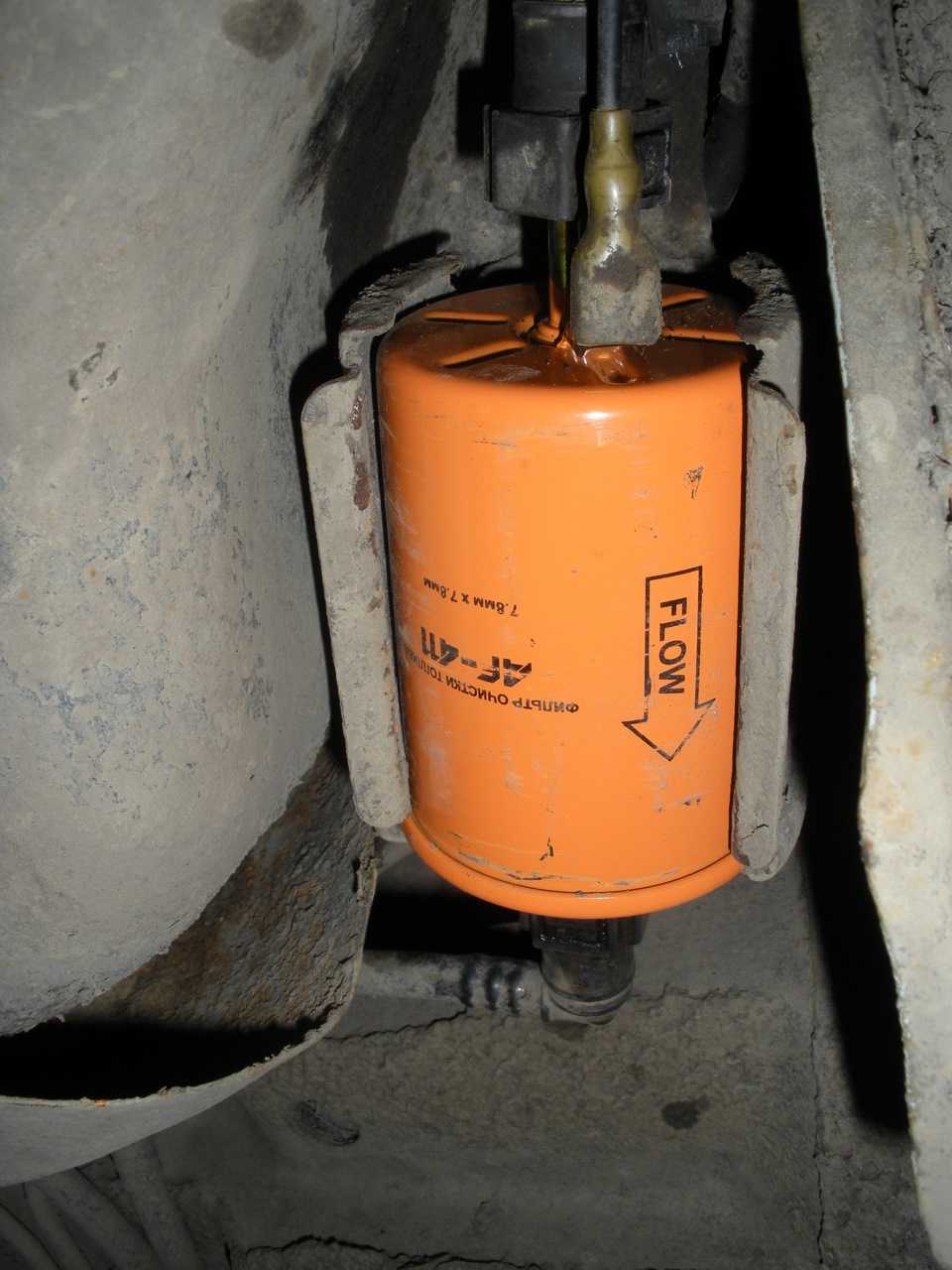 1. Топливный фильтр находится справа (если смотреть по ходу движения) на днище автомобиля, возле топливного бака.