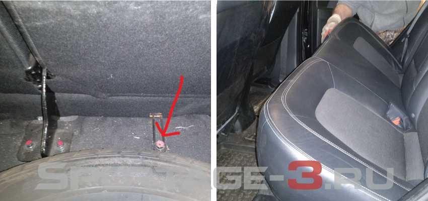 Далее демонтируйте заднее сиденье. Для этого открутите один болт под днищем багажного отделения сзади. Крепежный элемент удерживает скобу задних сидений. В конце остается только дернуть всю конструкцию дивана на себя и снять его.
