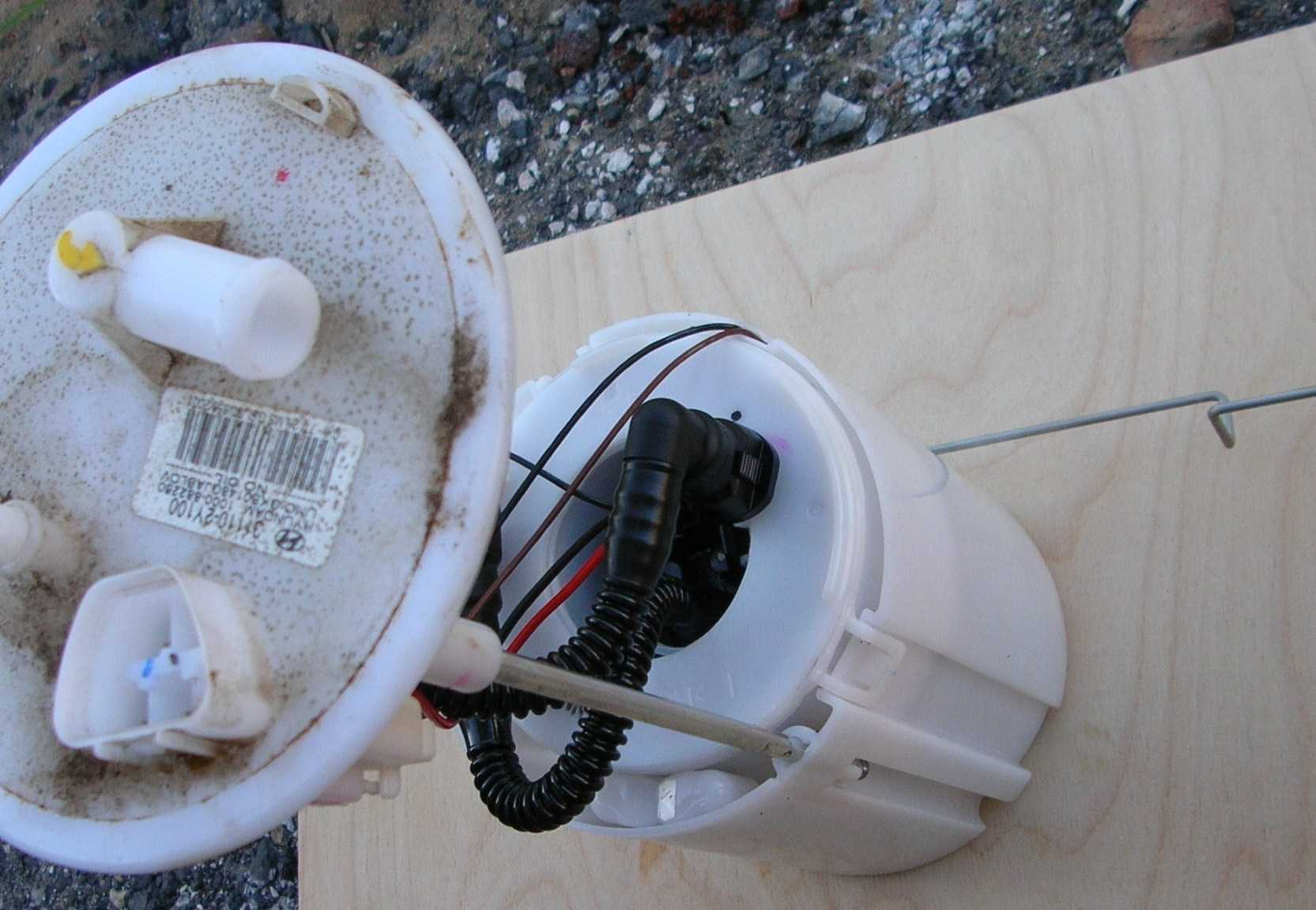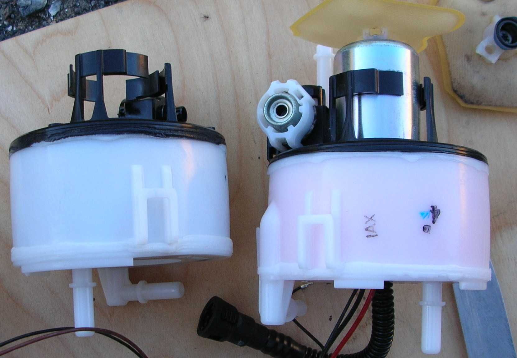 - В пластиковом корпусе установлен топливный насос, фильтр тонкой очистки и фильтр-сетка. Придется разбирать модуль, пока не получится добраться до складчатого фильтра тонкой очистки. Вынуть его и поставить на его место новый.