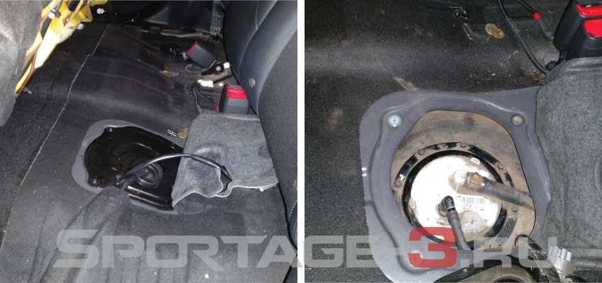 Чтобы самостоятельно поменять фильтр на бензиновом Spotrtage 2 нужно снять задний диван. Чтобы его разобрать, придется открутить связующий болт за запаской. После того, как Вы демонтировали сидение, остается открыть лючок и достать модуль. Фильтр крепится к корпусу встроенной резьбой.