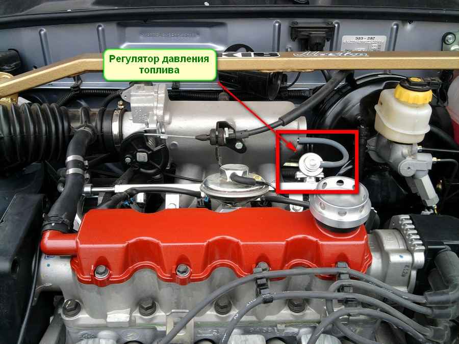 На автомобиле Ланос регулятор давления топлива расположен на топливной рампе с правой стороны (если смотреть стоя к авто лицом)
