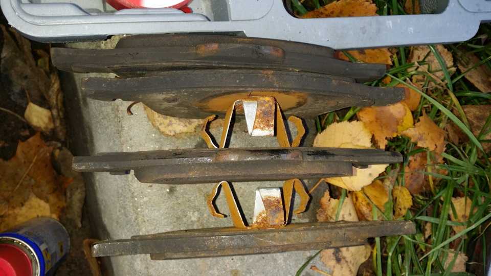 - С помощью отвертки освободите пружинный фиксатор внешней колодки и демонтируйте его.