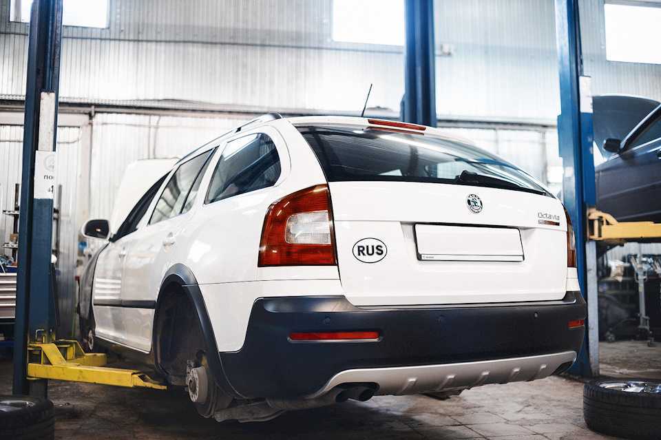 необходимо снять колесо для получения доступа непосредственно к детали – автомобиль поднимается на домкрате, подъемнике;